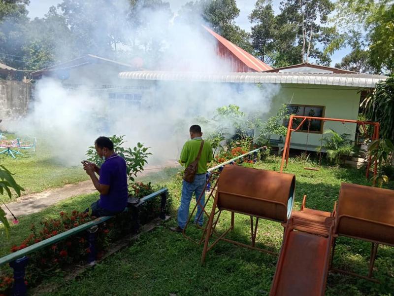 ออกพ่นหมอกควัน บ้านผู้ป่วยยืนยันโรคไข้เลือดออก ม.1 ภายในรัศมี 100 เมตร และศพด ทุกศูนย์ในเขตตำบลเด่นราษฎร์ ฆ่าเชื้อ และพ่นหมอกควันเตรียมพร้อมเปิดเรียน