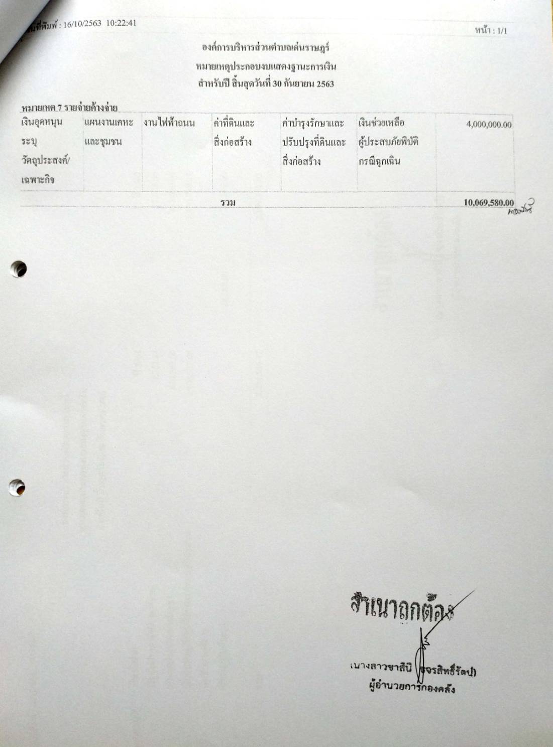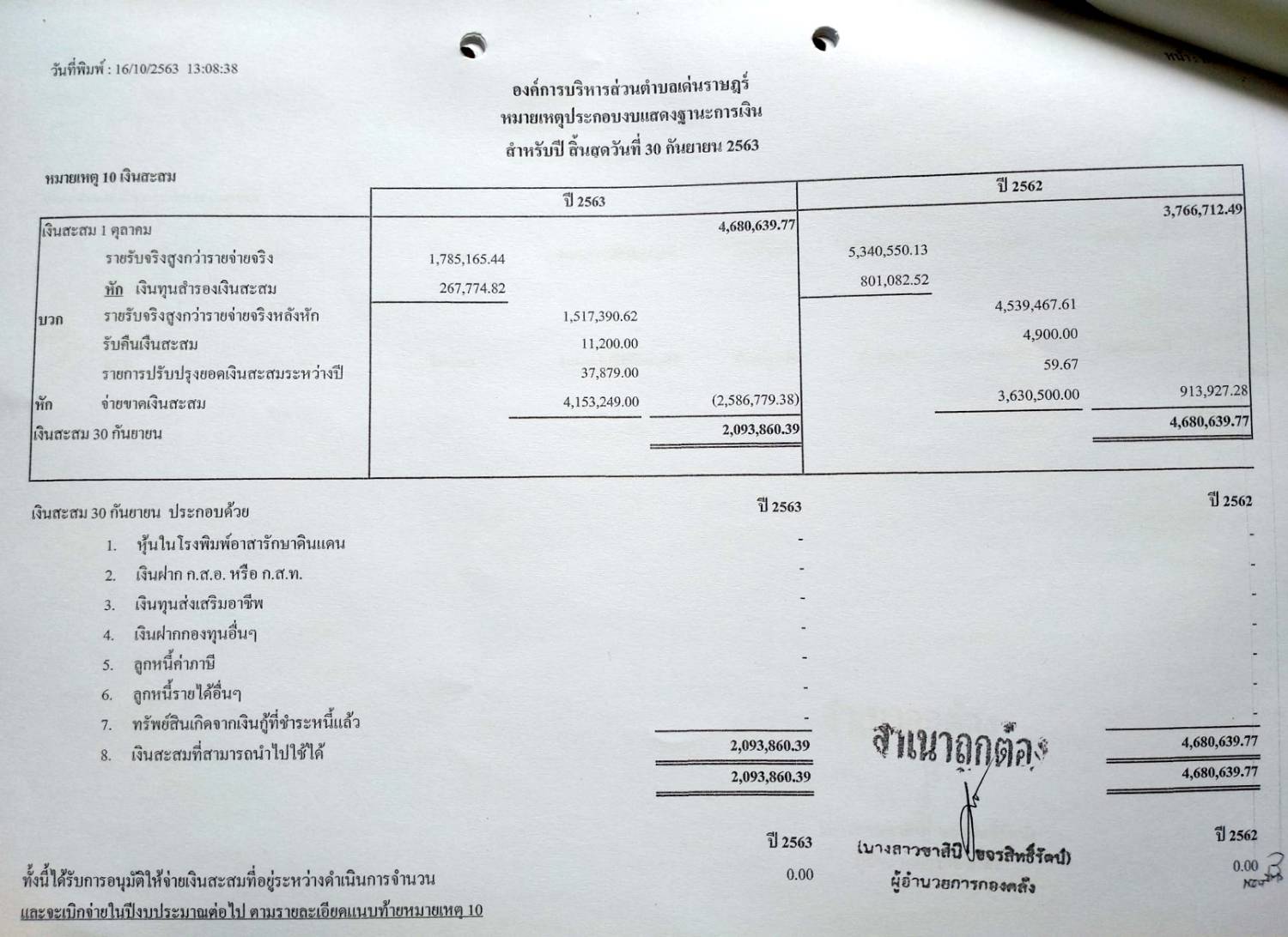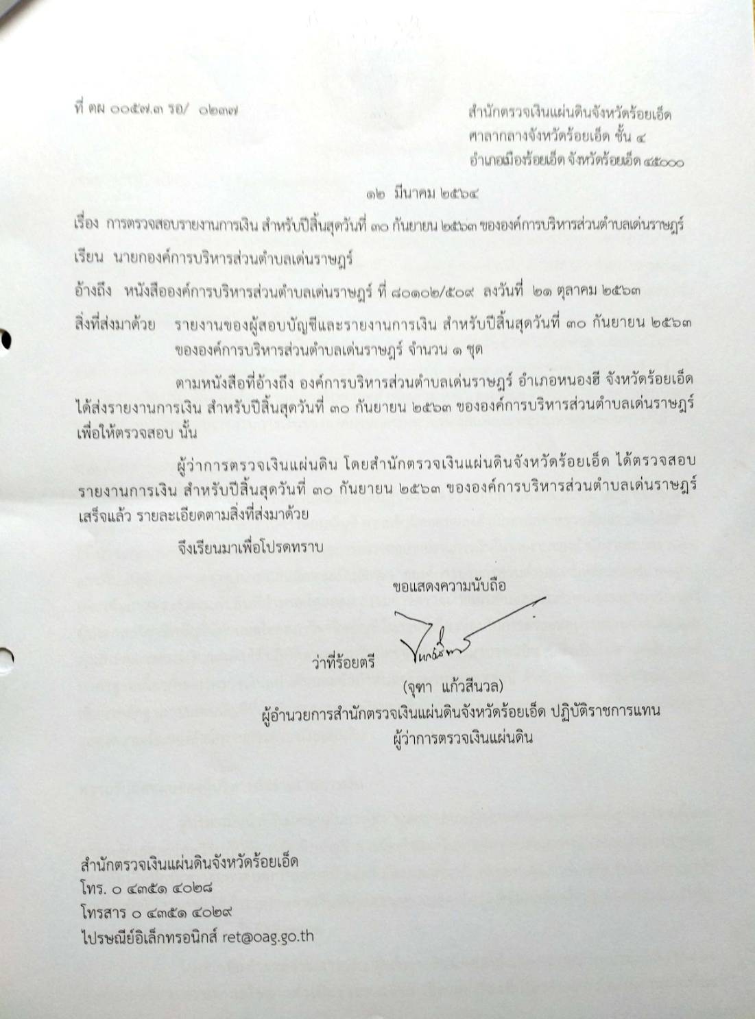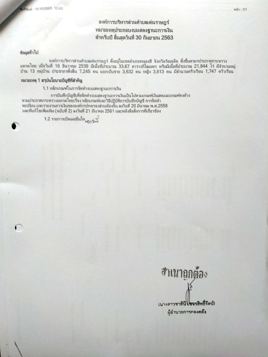ประกาศองค์การบริหารส่วนตำบลเด่นราษฎร์ เรื่อง รายงานผลการตรวจสอบงบแสดงฐานะการเงิน ประจำปีงบประมาณ ๒๕๖๓ ของสำนักตรวจเงินแผ่นดิน