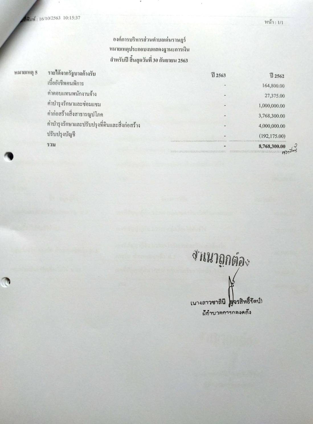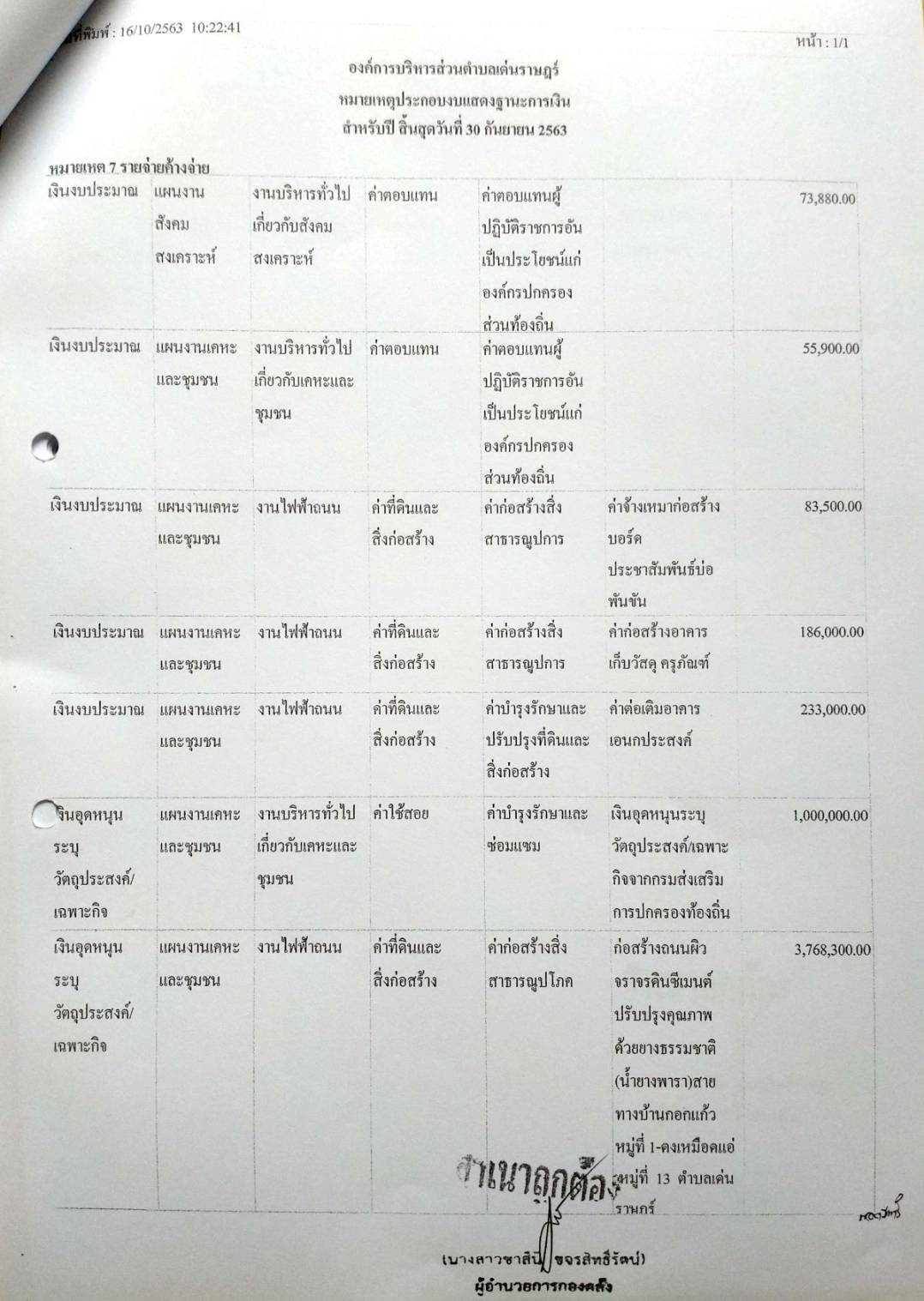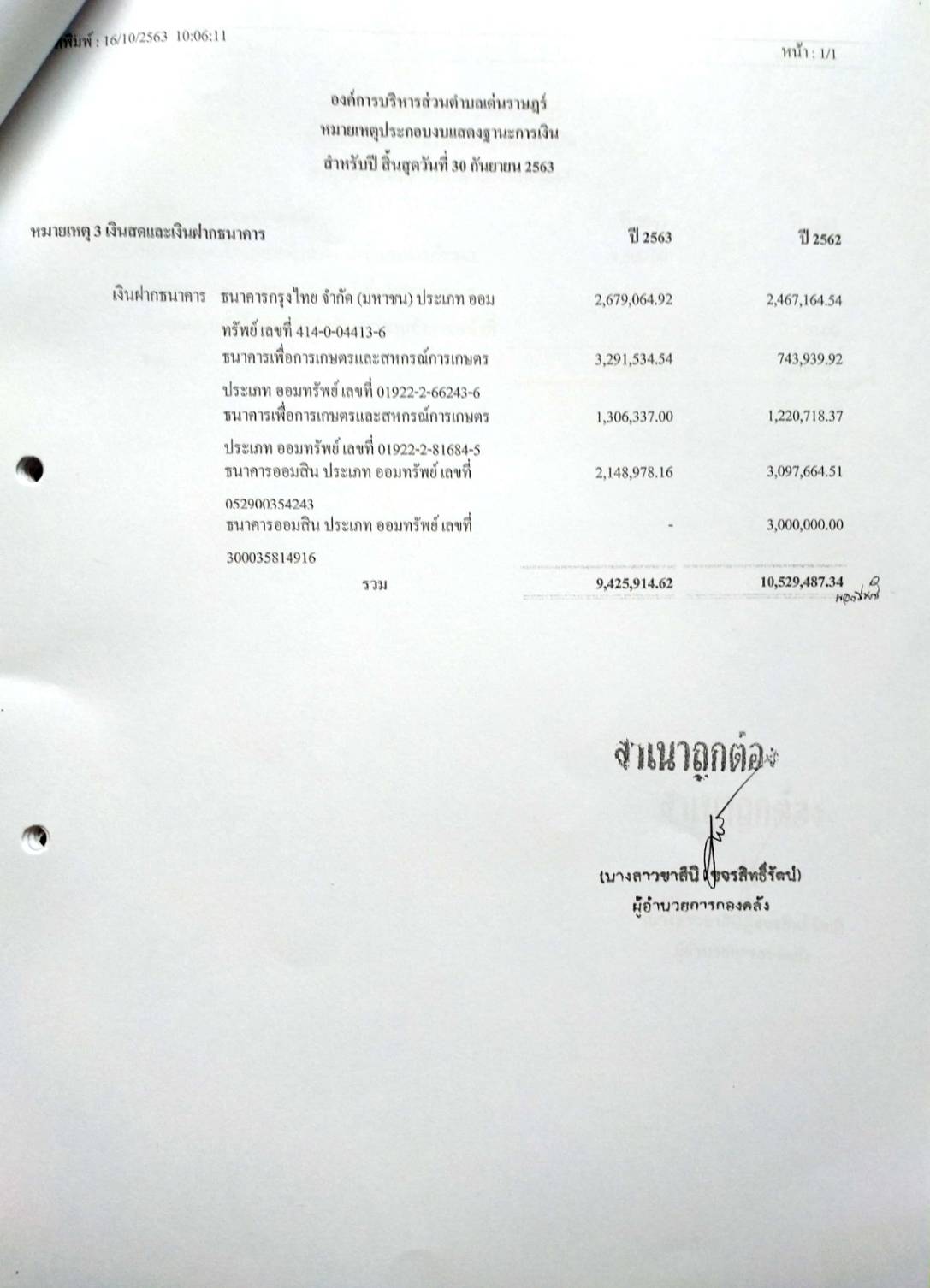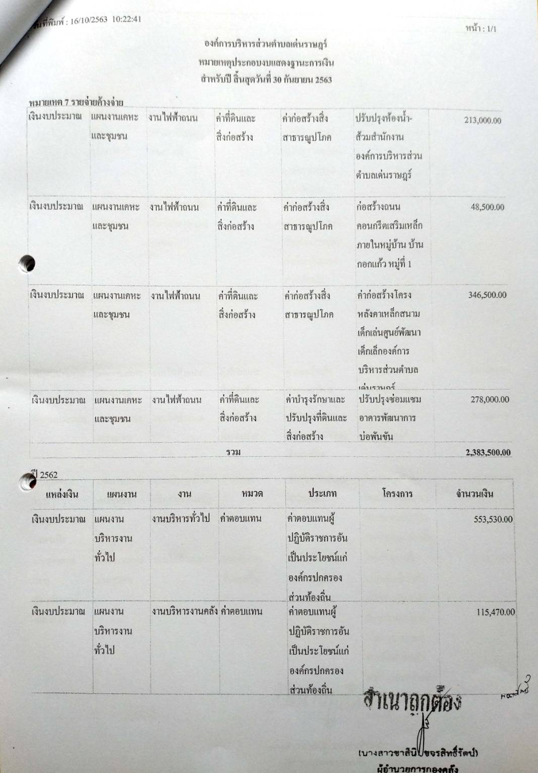ประกาศองค์การบริหารส่วนตำบลเด่นราษฎร์ เรื่อง รายงานผลการตรวจสอบงบแสดงฐานะการเงิน ประจำปีงบประมาณ ๒๕๖๓ ของสำนักตรวจเงินแผ่นดิน