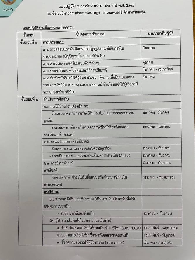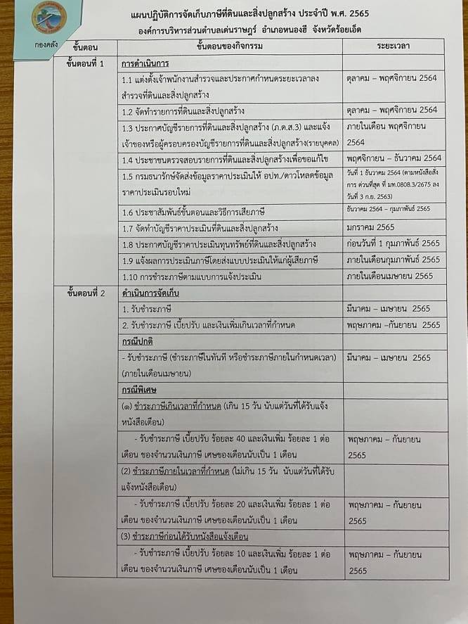 แผนการจัดเก็บภาษีและพัฒนารายได้ ประจำปีงบประมาณ พ.ศ. 2565