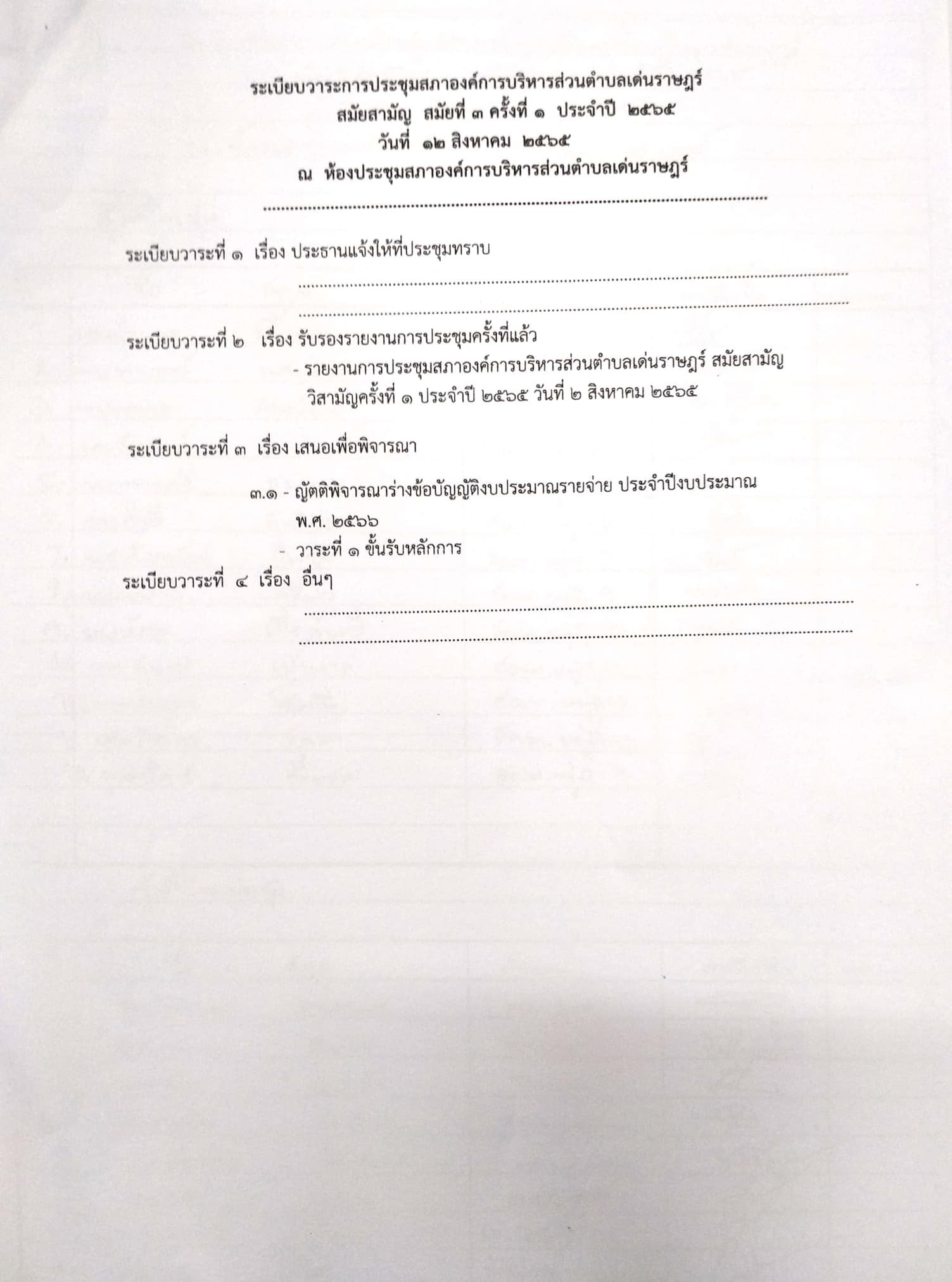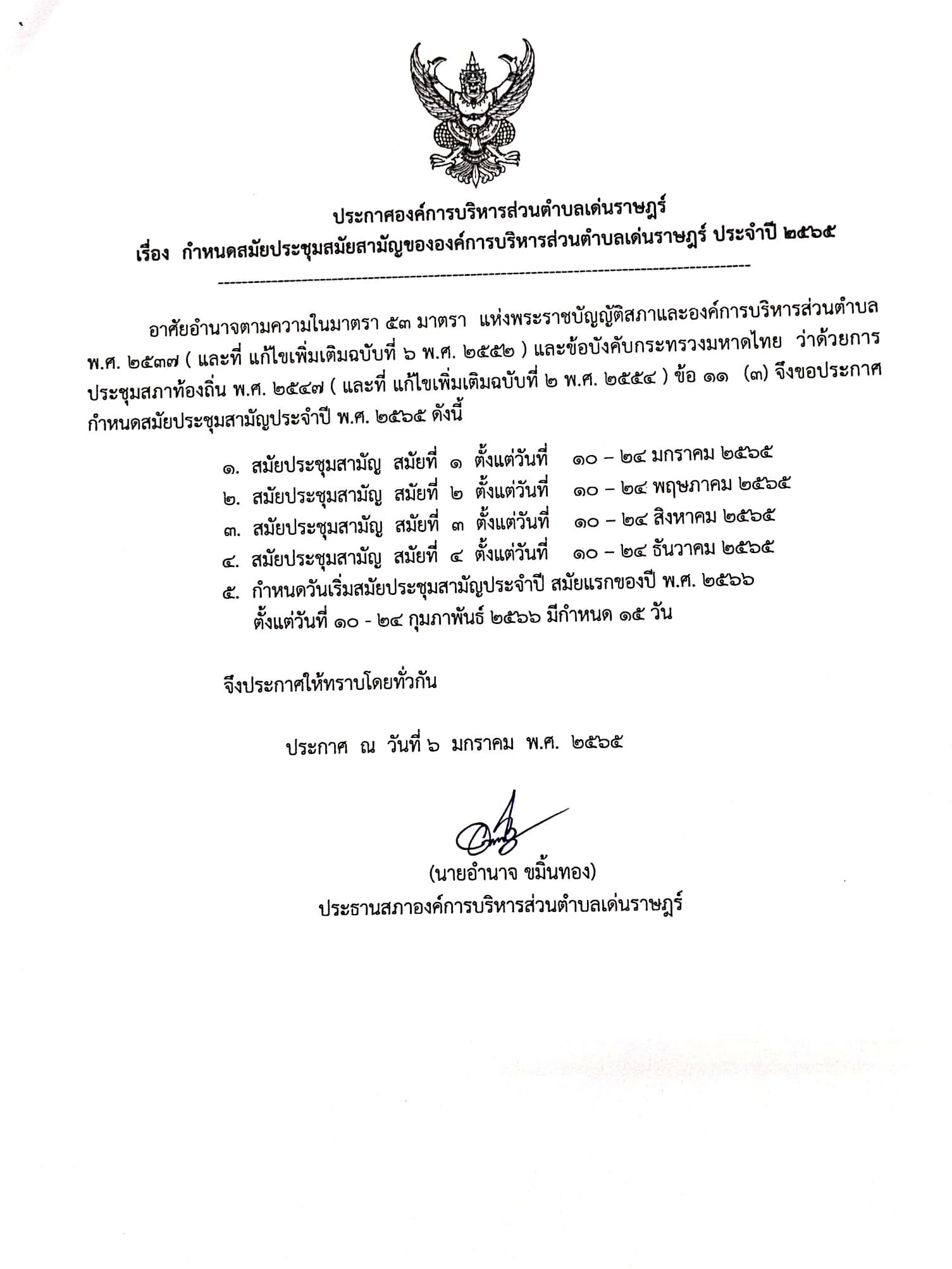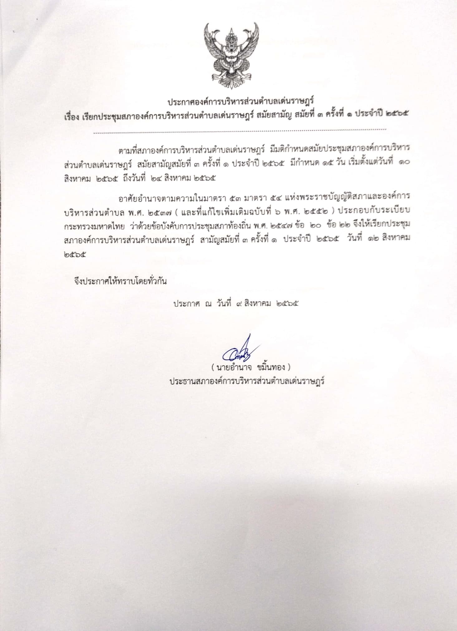 เรื่อง กำหนดประชุมสมัยสามัญองค์การบริหารส่วนตำบลเด่นราษฎร์ ประจำปี ๒๕๖๕ / เรื่อง เรียกประชุมสภาองค์การบริหารส่วนตำบลเด่นราษฎร์ สมัยสามัญ สมัยที่ ๓ ค