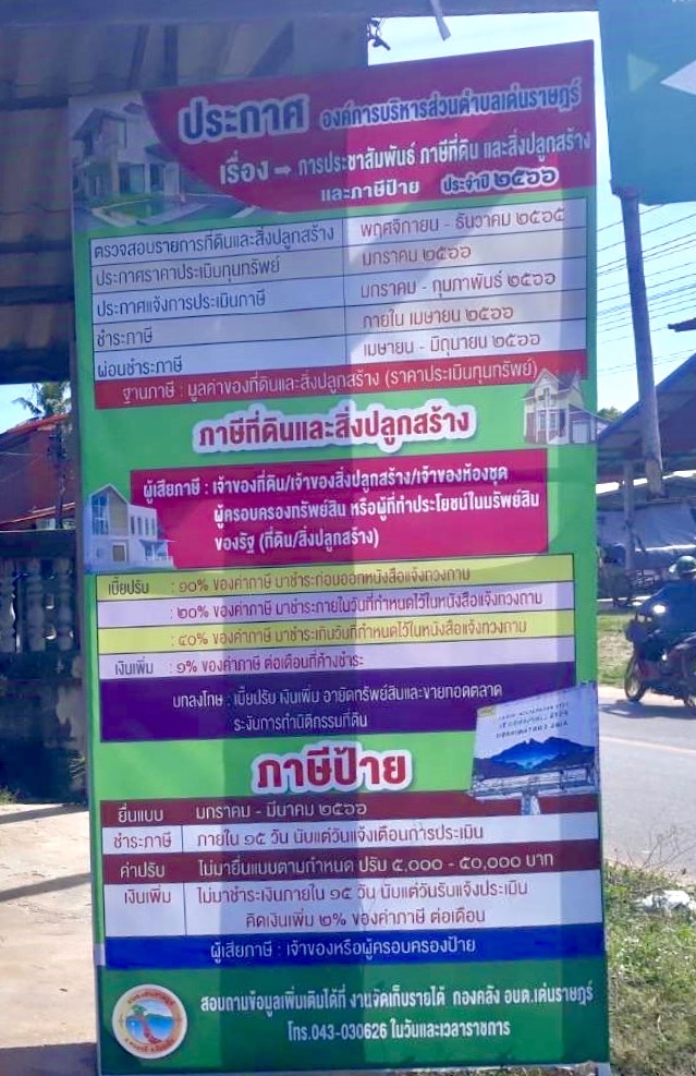 รายละเอียด : แจ้งข่าว องค์การบริหารส่วนตำบลเด่นราษฎร์ แจ้งกำหนดการ เกี่ยวกับภาษีที่ดินและสิ่งปลูก และภาษีป้าย ให้พี่น้องประชาชนชาวตำบลเด่นราษราษฎร์ได้ทราบ และชำระภาษีตามกำหนด