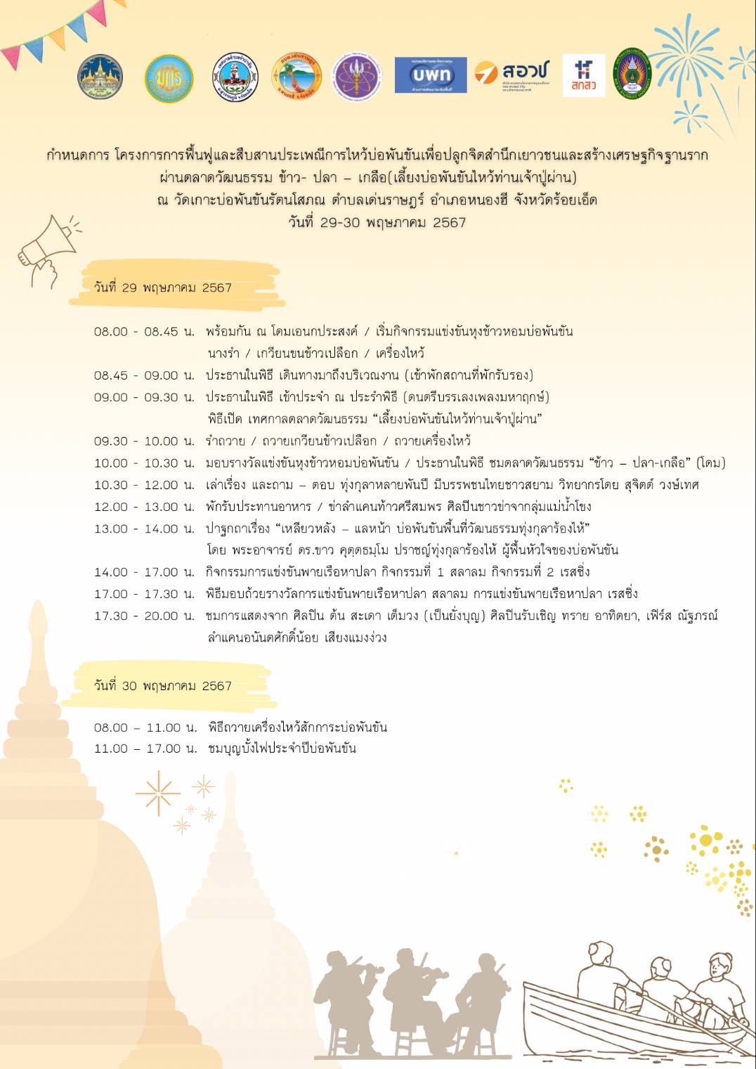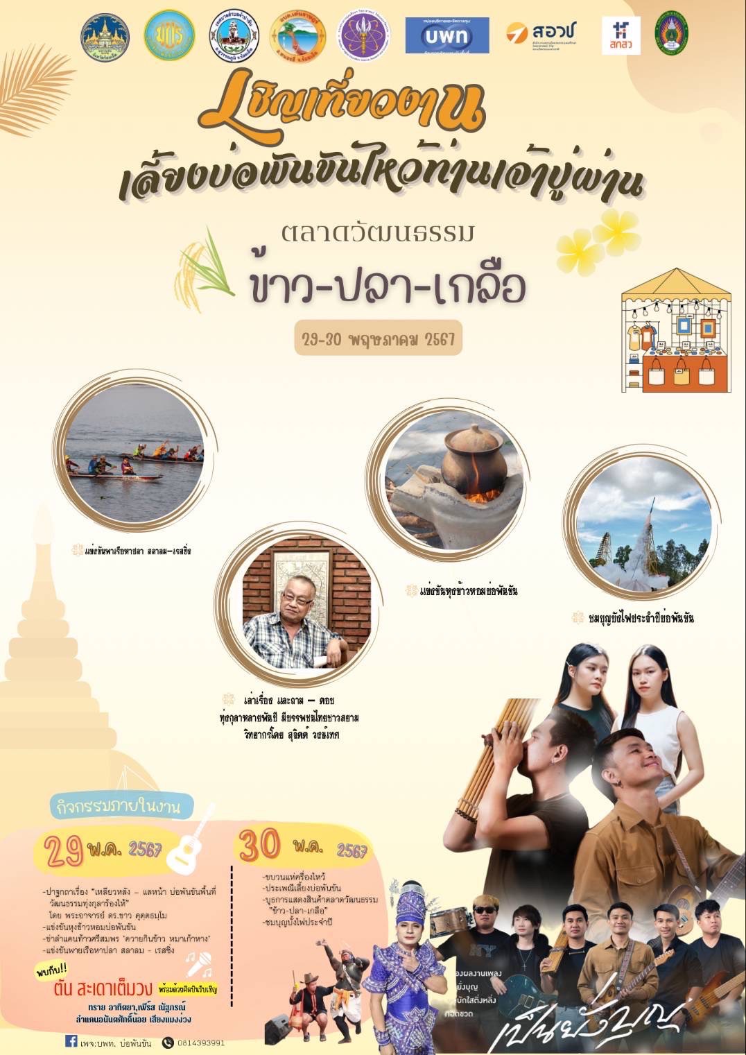 ชื่อเรื่อง : !!ประชาสัมพันธ์!!เชิญเที่ยวงานเลี้ยงบ่อพันขันไหว้ท่านเจ้าปู่ผ่าน ตลาดวัฒนธรรม ข้าว-ปลา-เกลือ 29-30 พฤษภาคม 2567