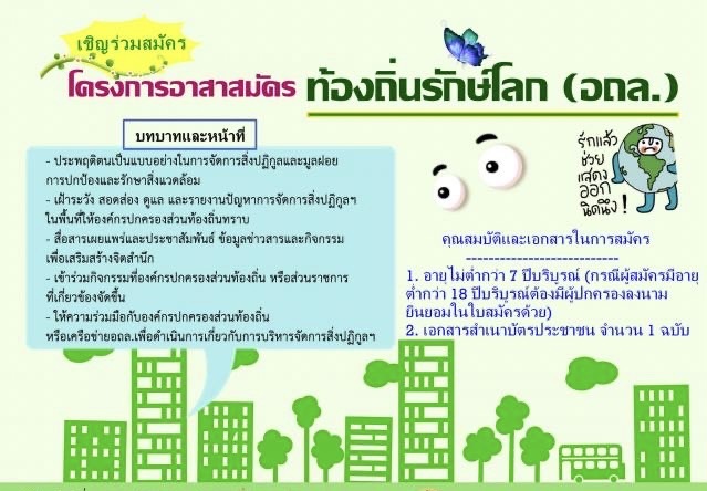 !!แจ้งประชาสัมพันธ์!! องค์การบริหารส่วนตำบลเด่นราษฏร์ เรื่อง โครงการอาสาสมัคร ท้องถิ่นรักโลก
