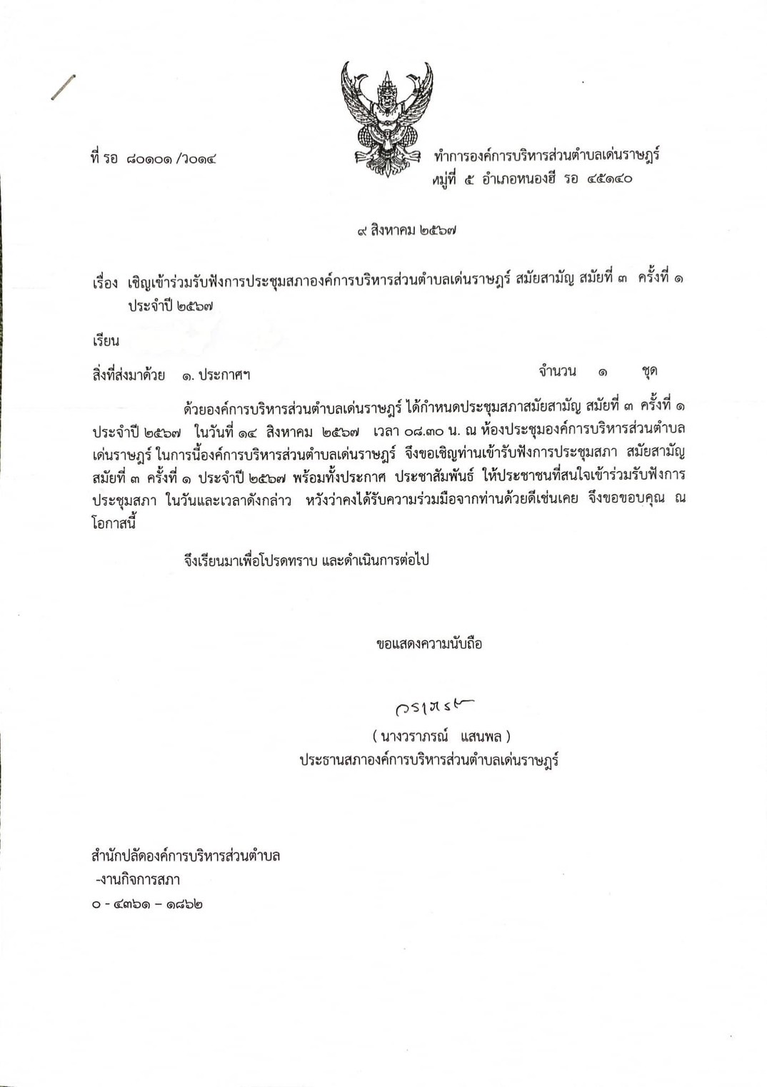 #ประชาสัมพันธ์!!เรื่อง เชิญเข้าร่วมประชุมสภาองค์การบริหารส่วนตำบลเด่นราษฎร์ สมัยสามัญ สมัยที่ 3 ครั้งที่ 1 ประจำปี 2567 ในวันที่ 14 สิงหาคม 2567 เวลา
