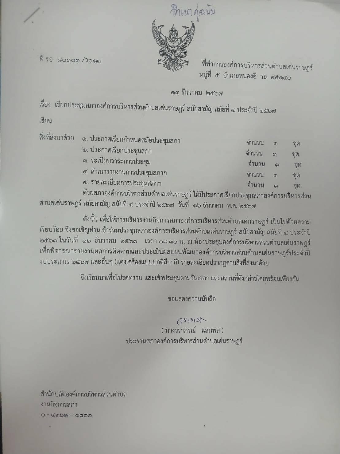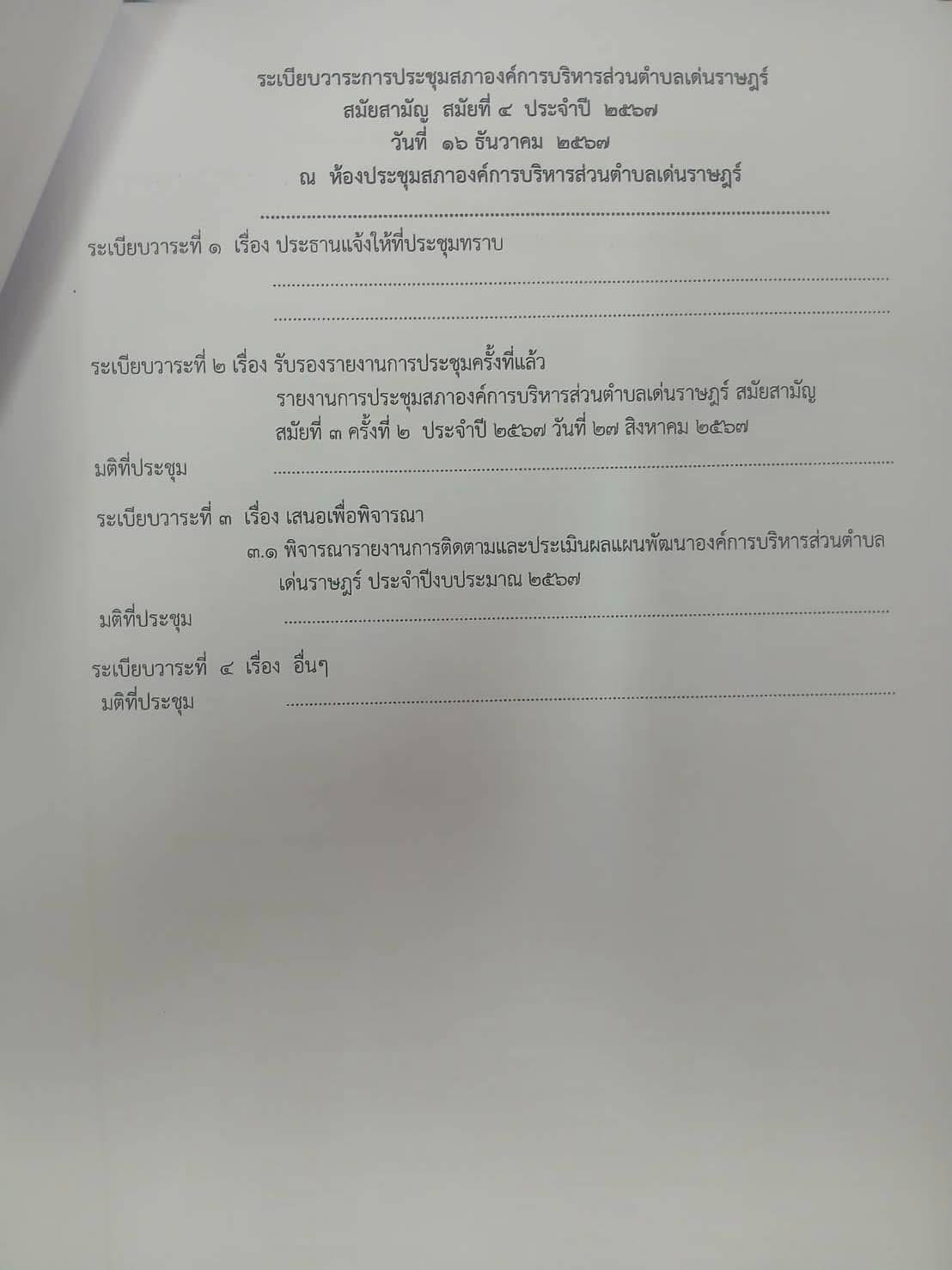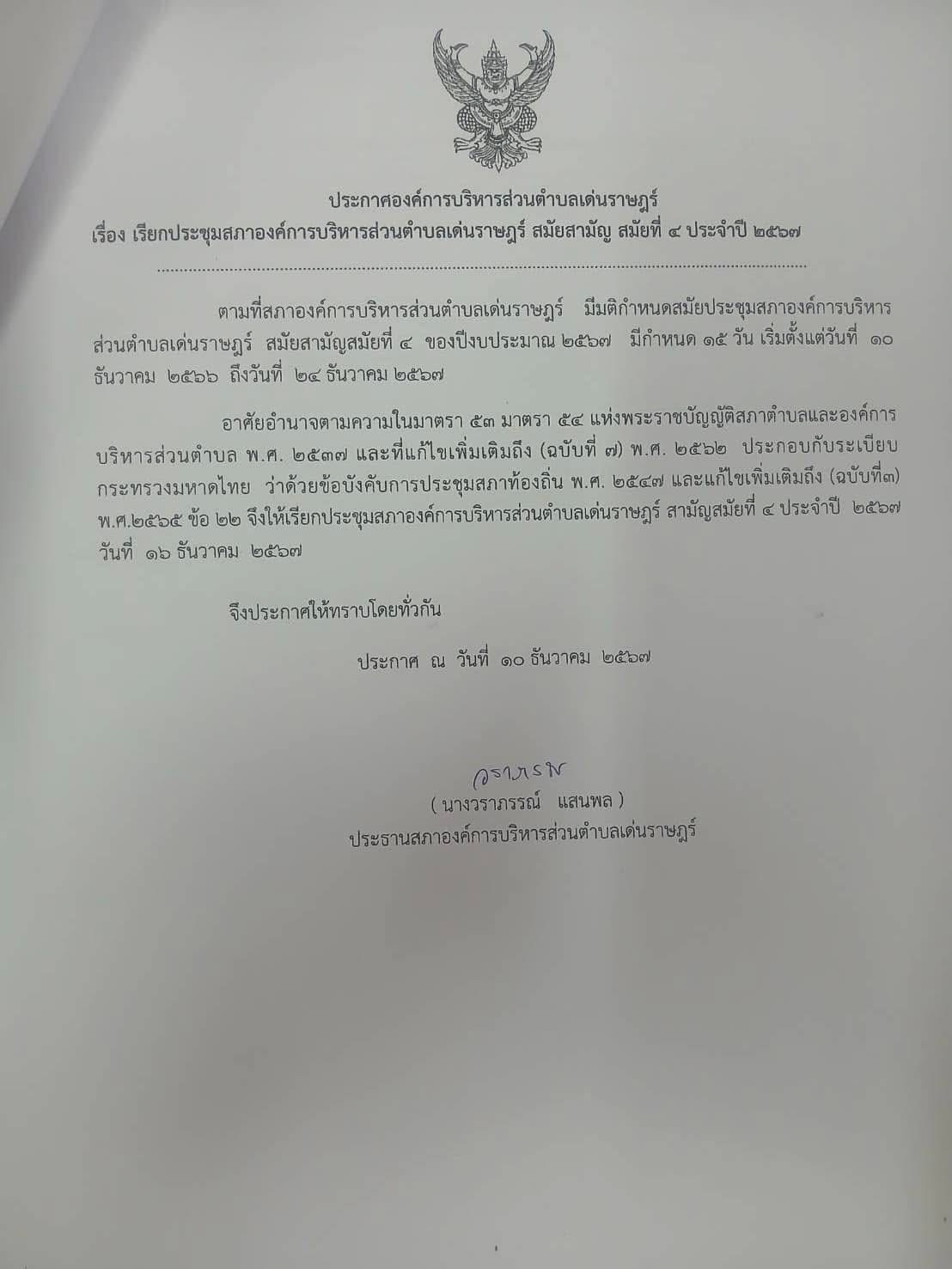 แจ้งข่าว#ประชาสัมพันธ์!!เรื่อง เชิญเข้าร่วมประชุมสภาองค์การบริหารส่วนตำบลเด่นราษฎร์ สมัยสามัญ สมัยที่ 4 ประจำปี 2567 ในวันที่ 16 ธันวาคม 2567 เวลา 08: