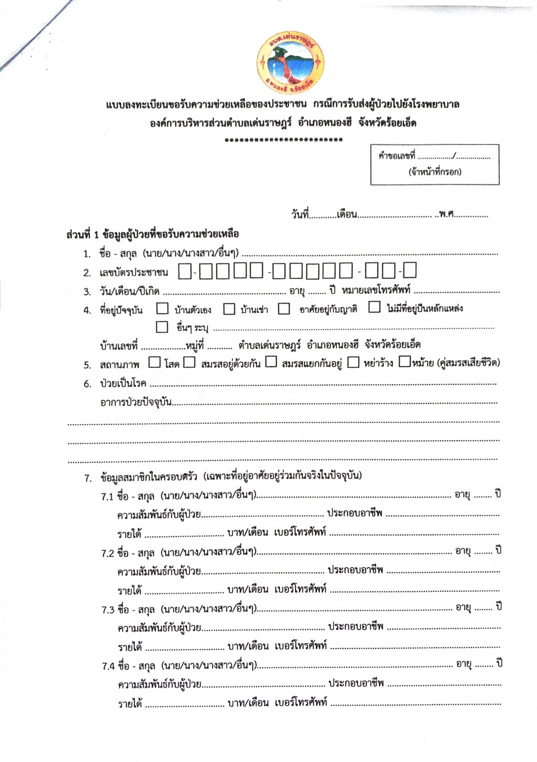 !!ประชาสัมพันธ์!! เรื่อง การลงทะเบียนขอรับความช่วยเหลือ กรณีการรับส่งผู้ป่วยไปโรงพยาบาล และกลับจากโรงพยาบาล