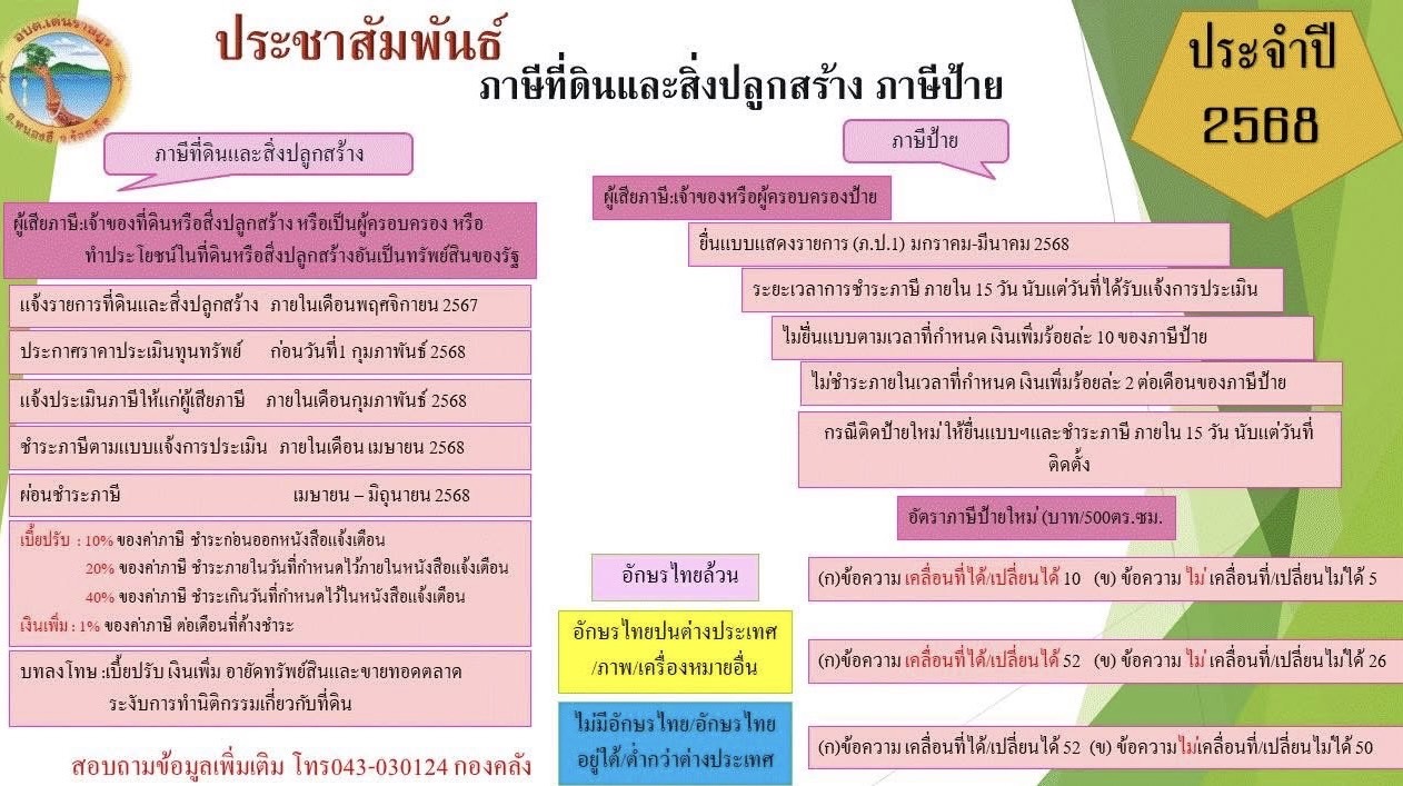 ชื่อเรื่อง : !!ประชาสัมพันธ์!! การชำระภาษี อากรท้องถิ่นประจำปี 2568