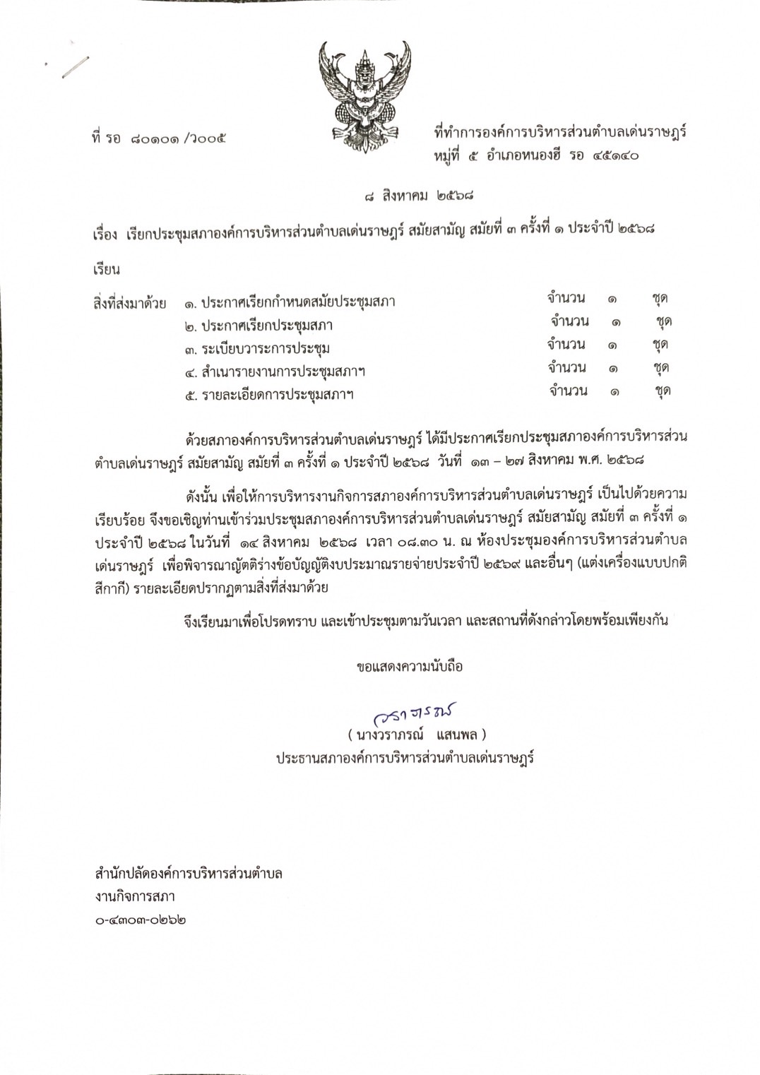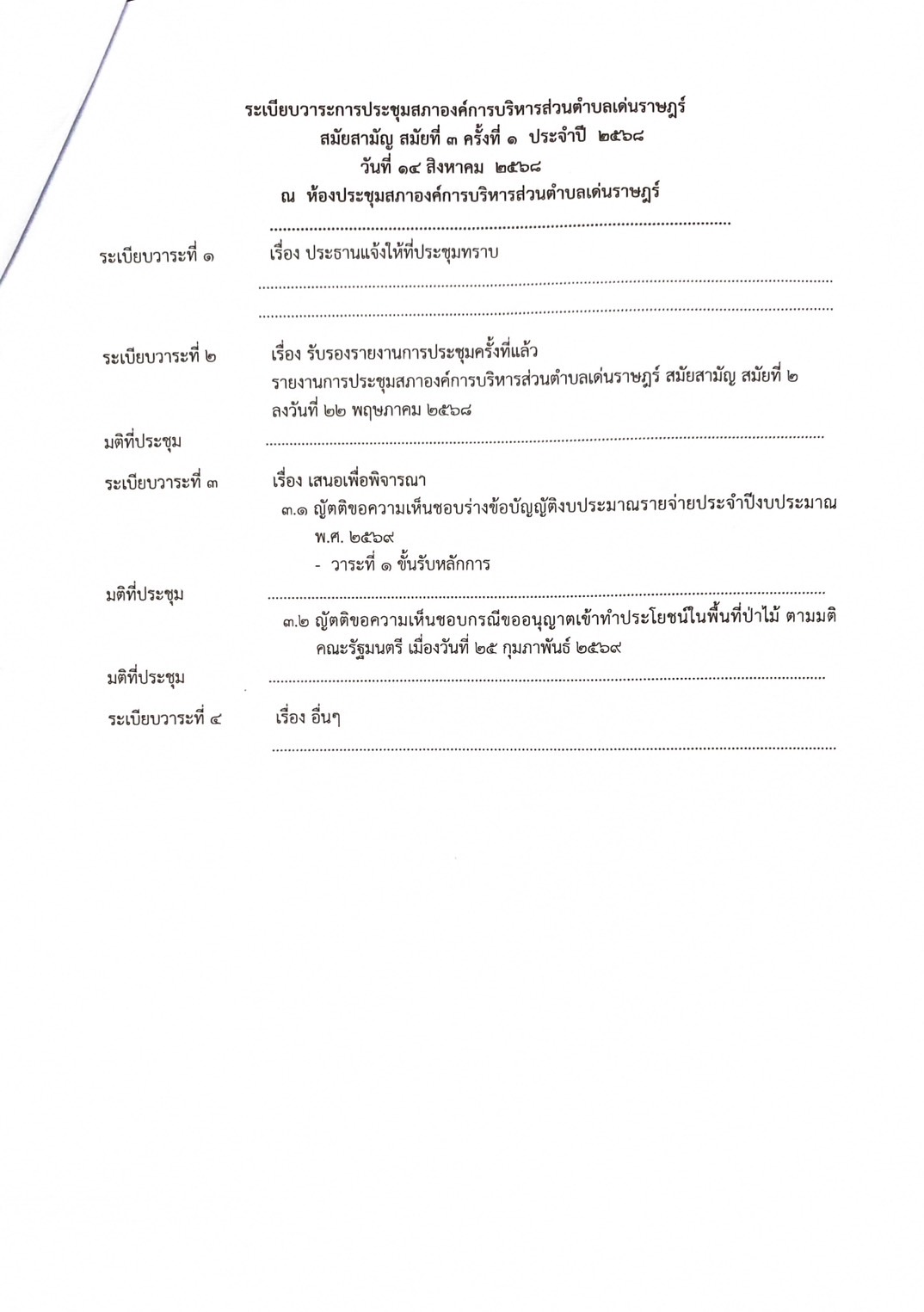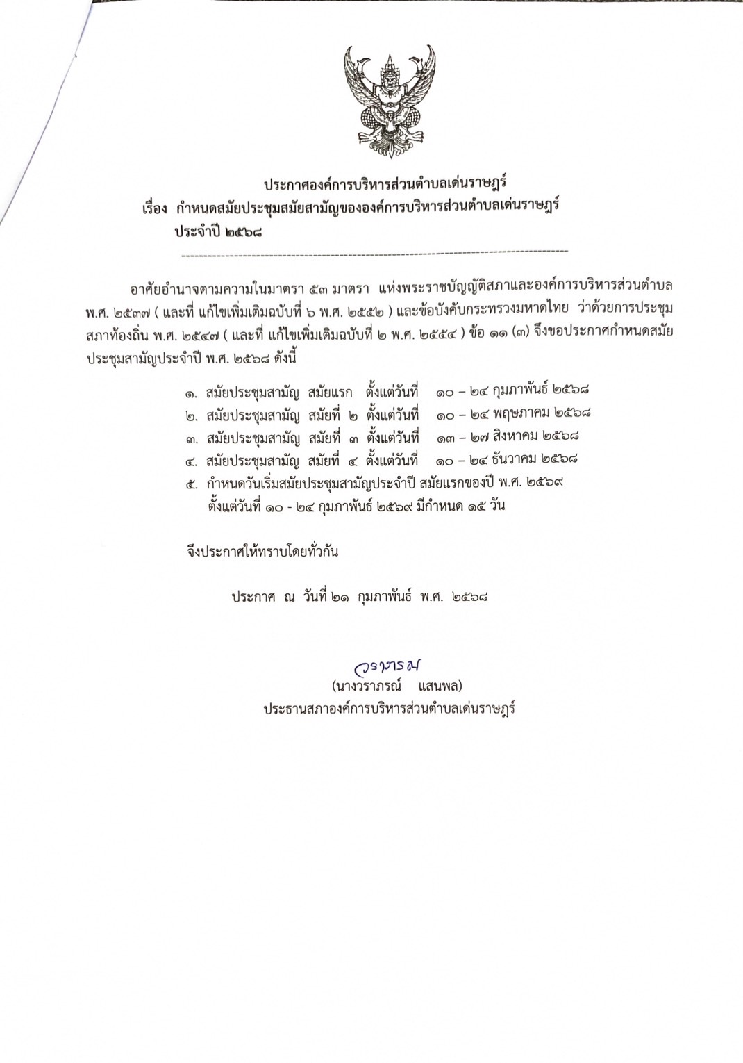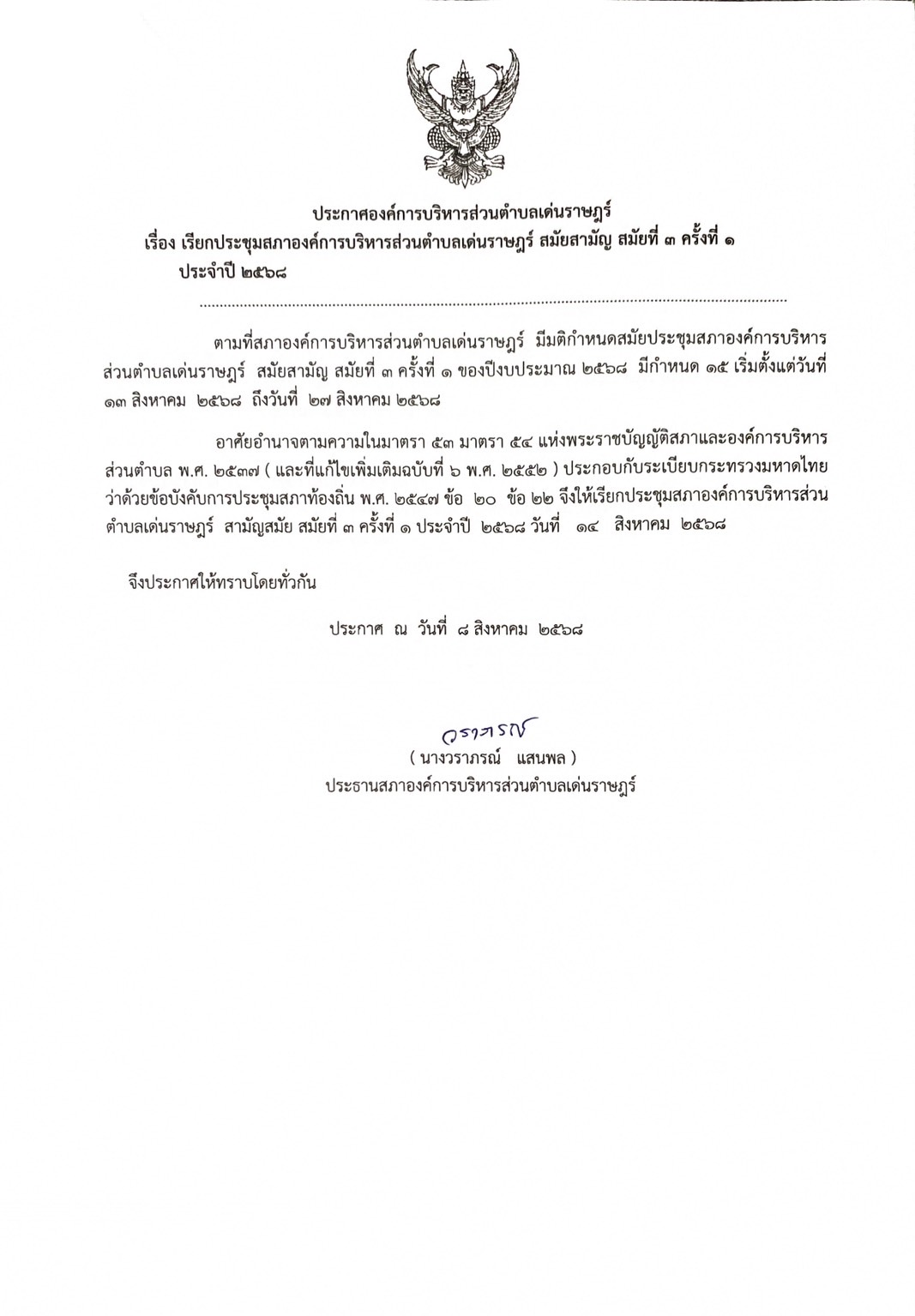 #ประชาสัมพันธ์!!เรื่อง เรียกประชุมสภาองค์การบริหารส่วนตำบลเด่นราษฎร์ สมัยสามัญสมัยที่ 3 ครั้งที่ 1 ประจำปี 2568