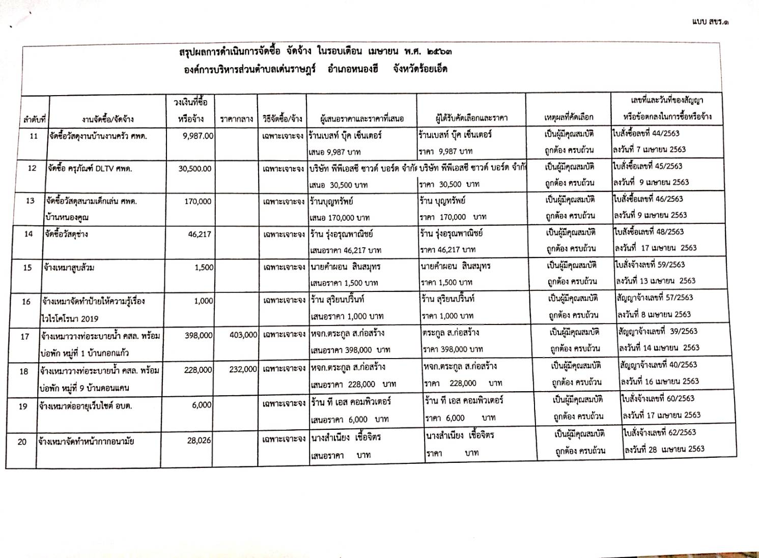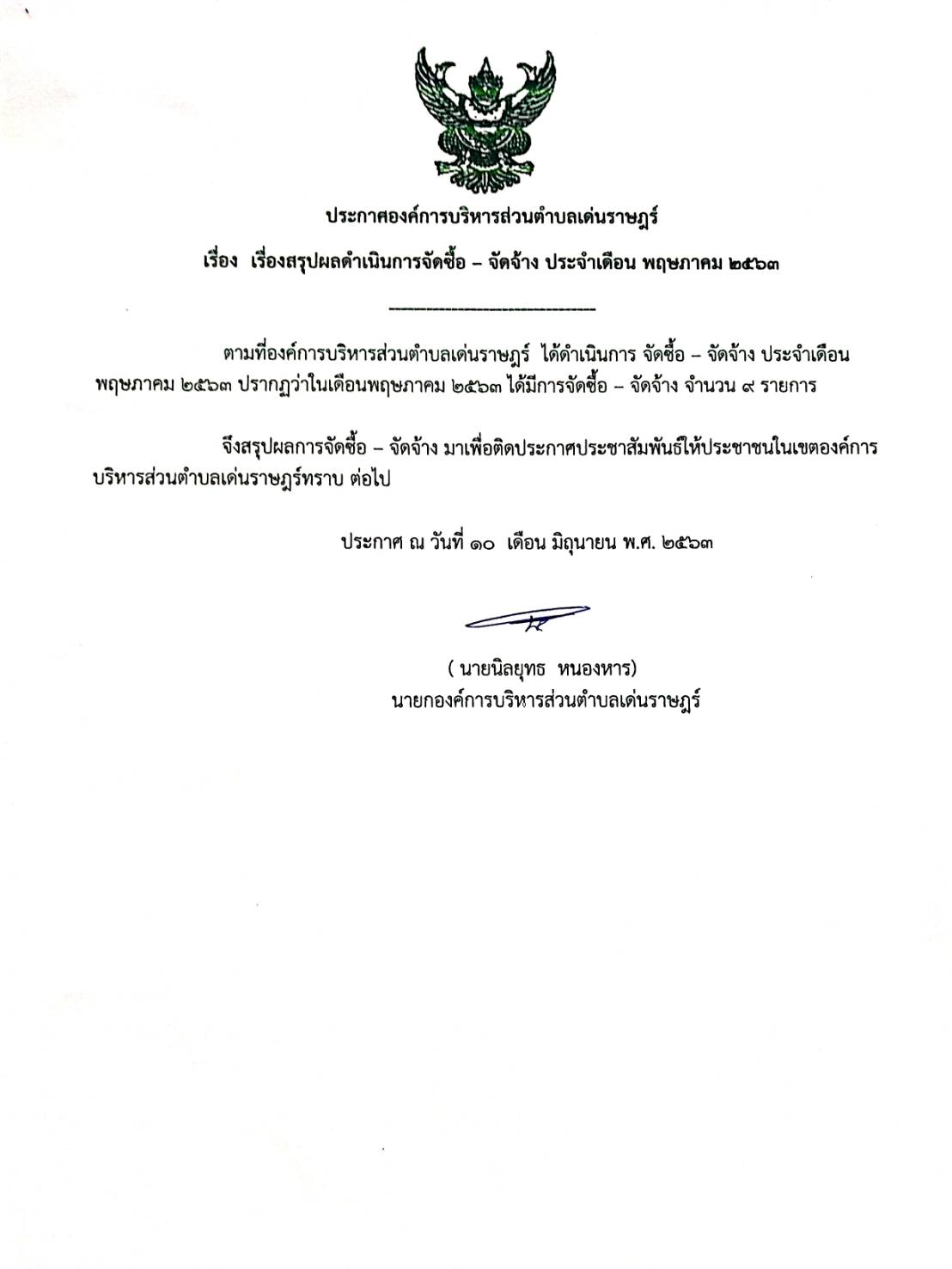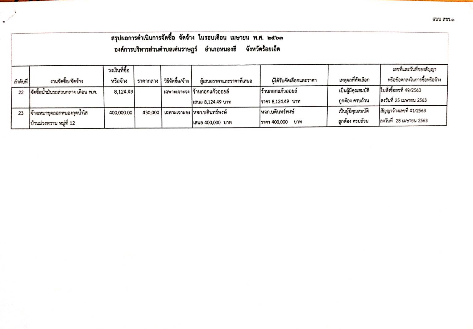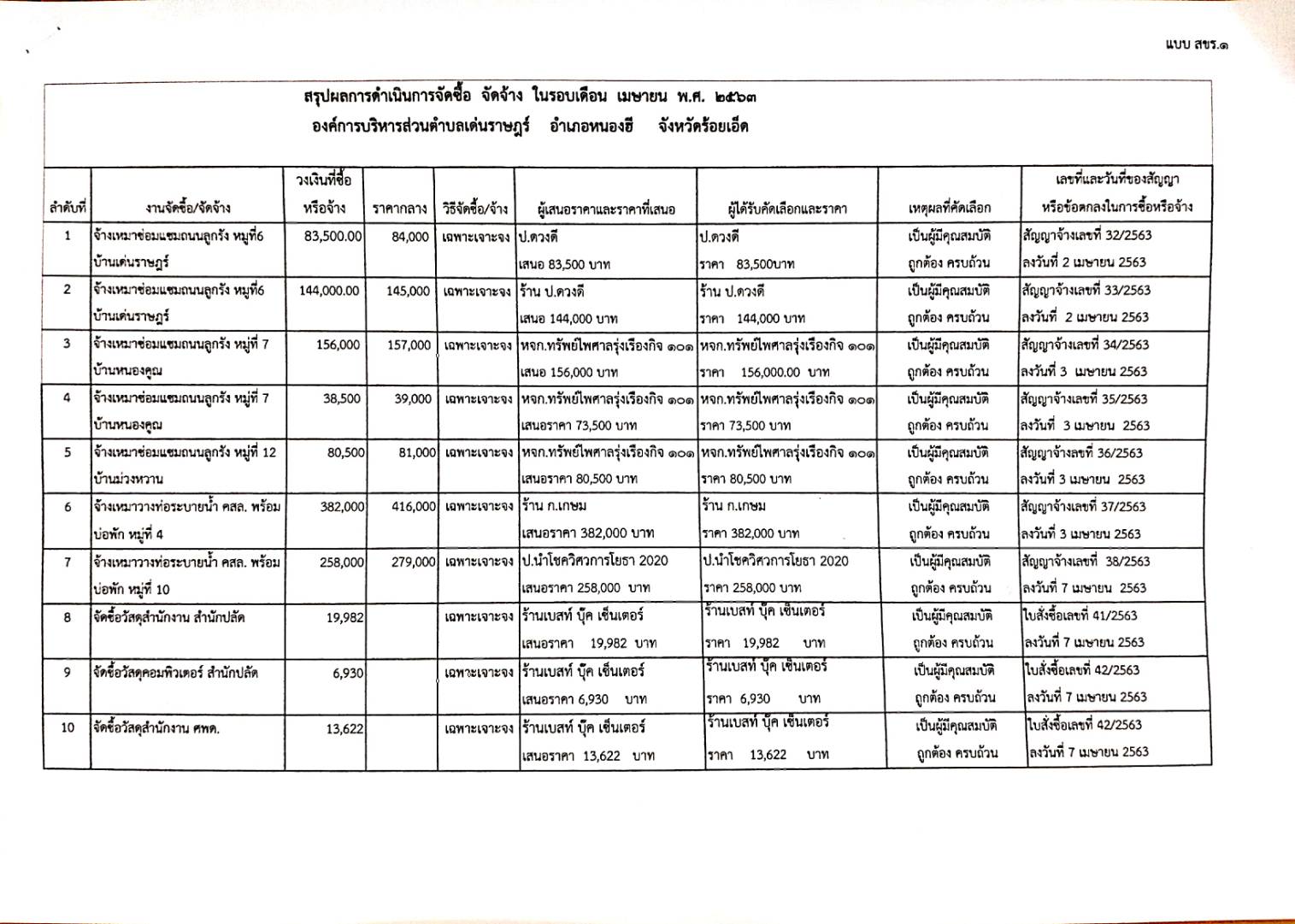 สรุปผลการจัดซื้อจัด-จัดจ้าง ประจำเดือน เมษายน และเดือนพฤษภาคม 2563