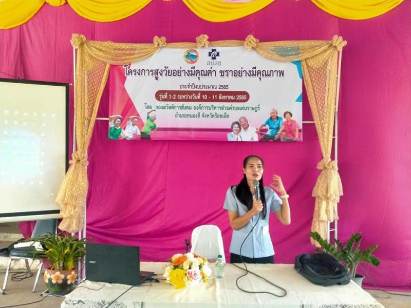 ได้ดำเนินโครงการสูงวัยอย่างมีคุณค่า ชราอย่างมีคุณภาพ ประจำปีงบประมาณ 2565 รุ่นที่ท1-2 ระหว่างวันที่ 10-11 สิงหาคม 2565