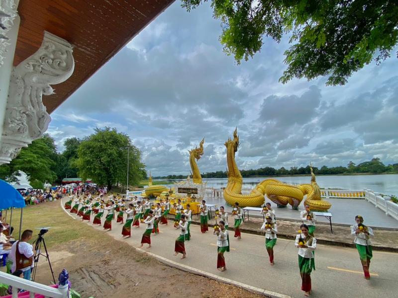 นายอุดมเกียรติ หงษ์มาลา นายอำเภอหนองฮี มอบหมายให้ นายสมพงษ์ พุกพิลา ปลัดอำเภอหัวหน้ากลุ่มงานบริหารงานปกครองเป็นประธานในพิธีจุดธูป-เทียน บูชาพระรัตนตรัย ต่อมาเวลา 08:30 น.พิธีทำบุญตักบาตร พระสงฆ์จำนวน 73 รูป และเวลา 09:09 น.พิธีถวายเครื่องบวงสรวงพญานาค และพิธีรำบวงสรวง นางรำ 30 คน ณ บริเวณลานพญานาค โดยมีกำนัน/ผู้ใหญ่บ้าน/และพระพุทธศาสนิกชน เข้าร่วมพิธีในครั้งนี้