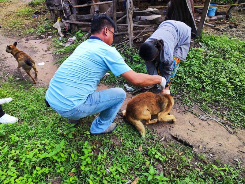 อบต.เด่นราษฎร์ ได้ลงพื้นที่ หมู่ที่ 5 บ้านหนองเหล็ก เพื่อให้บริการการฉีดวัคซีนพิษสุนัขบ้าเพื่อป้องกันโรคพิษสุนัขบ้าให้กับสุนัขและแมว