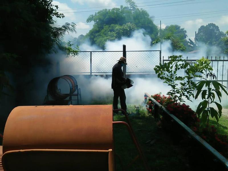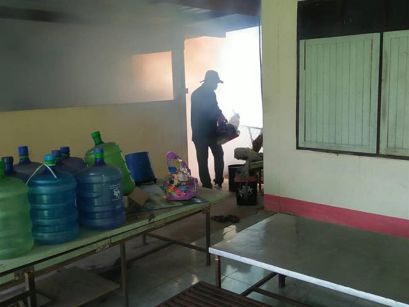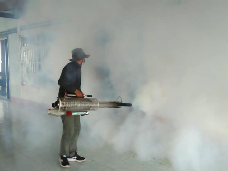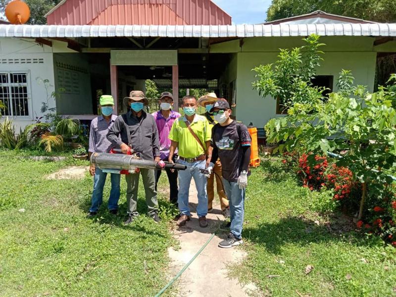 ออกพ่นหมอกควัน บ้านผู้ป่วยยืนยันโรคไข้เลือดออก ม.1 ภายในรัศมี 100 เมตร และศพด ทุกศูนย์ในเขตตำบลเด่นราษฎร์ ฆ่าเชื้อ และพ่นหมอกควันเตรียมพร้อมเปิดเรียน