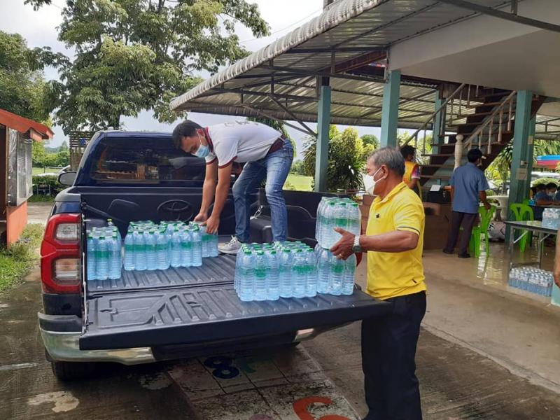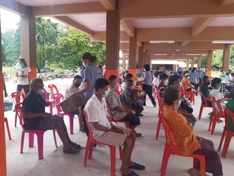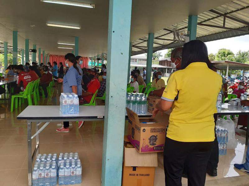 ได้ลงพื้นที่มอบอาหารว่างและน้ำดื่ม ให้กับประชาชนตำบลเด่นราษฎร์ที่มารับบริการฉีดวัคซีนป้องกันโรคโควิด-19 เข็ม 1 SV / เข็ม 2 AZ