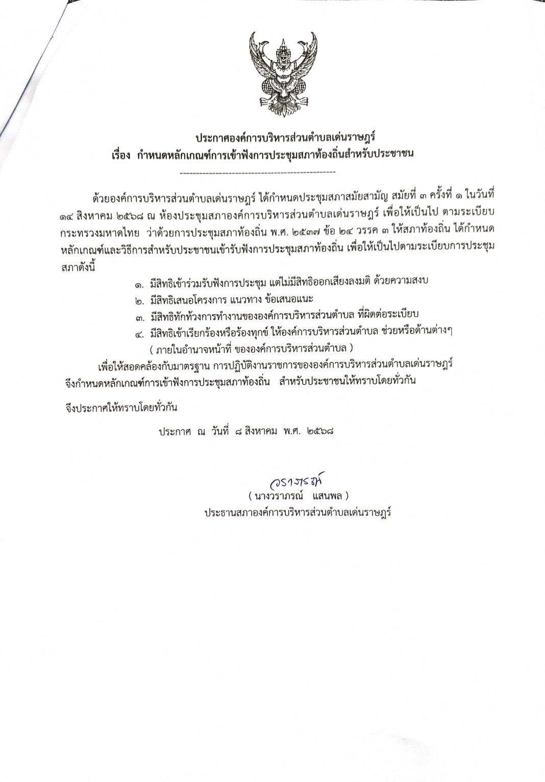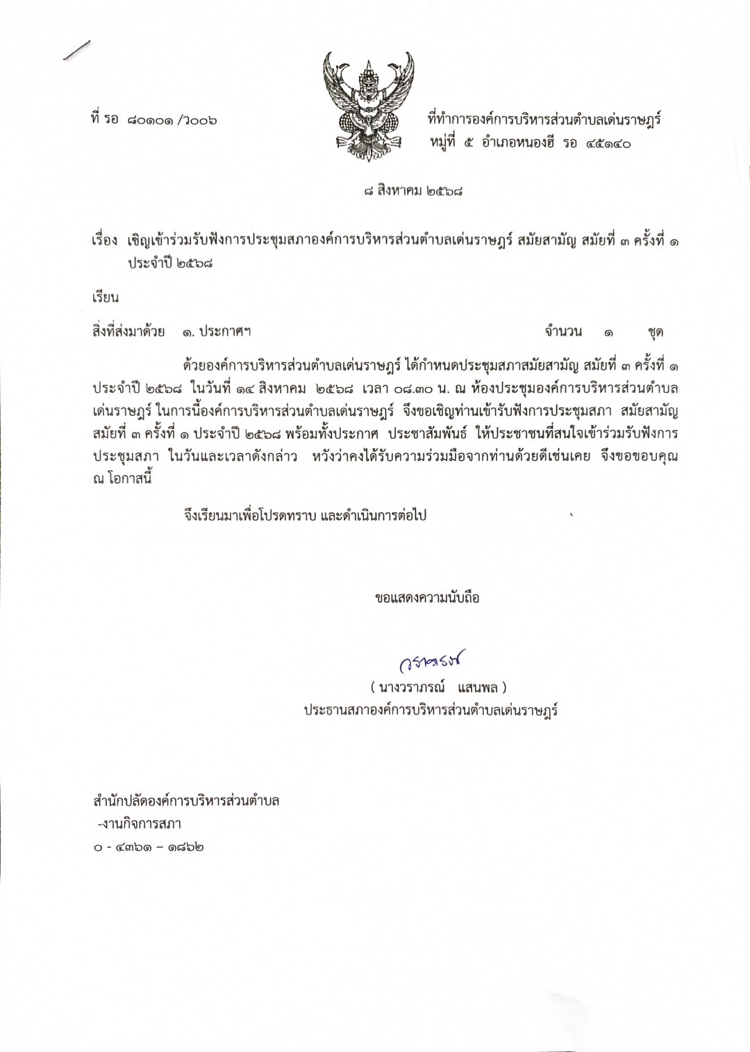 #ประชาสัมพันธ์!!เรื่อง เชิญเข้าร่วมรับฟังการประชุมสภาองค์การบริหารส่วนตำบลเด่นราษฎร์ สมัยสามัญสมัยที่ 3 ครั้งที่ 1 ประจำปี 2568